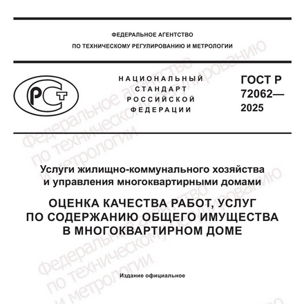 С 1 января 2026 года вступает в силу новый национальный стандарт ГОСТ Р 72062-2025, устанавливающий правила оценки качества работ и услуг по содержанию общего имущества в…
